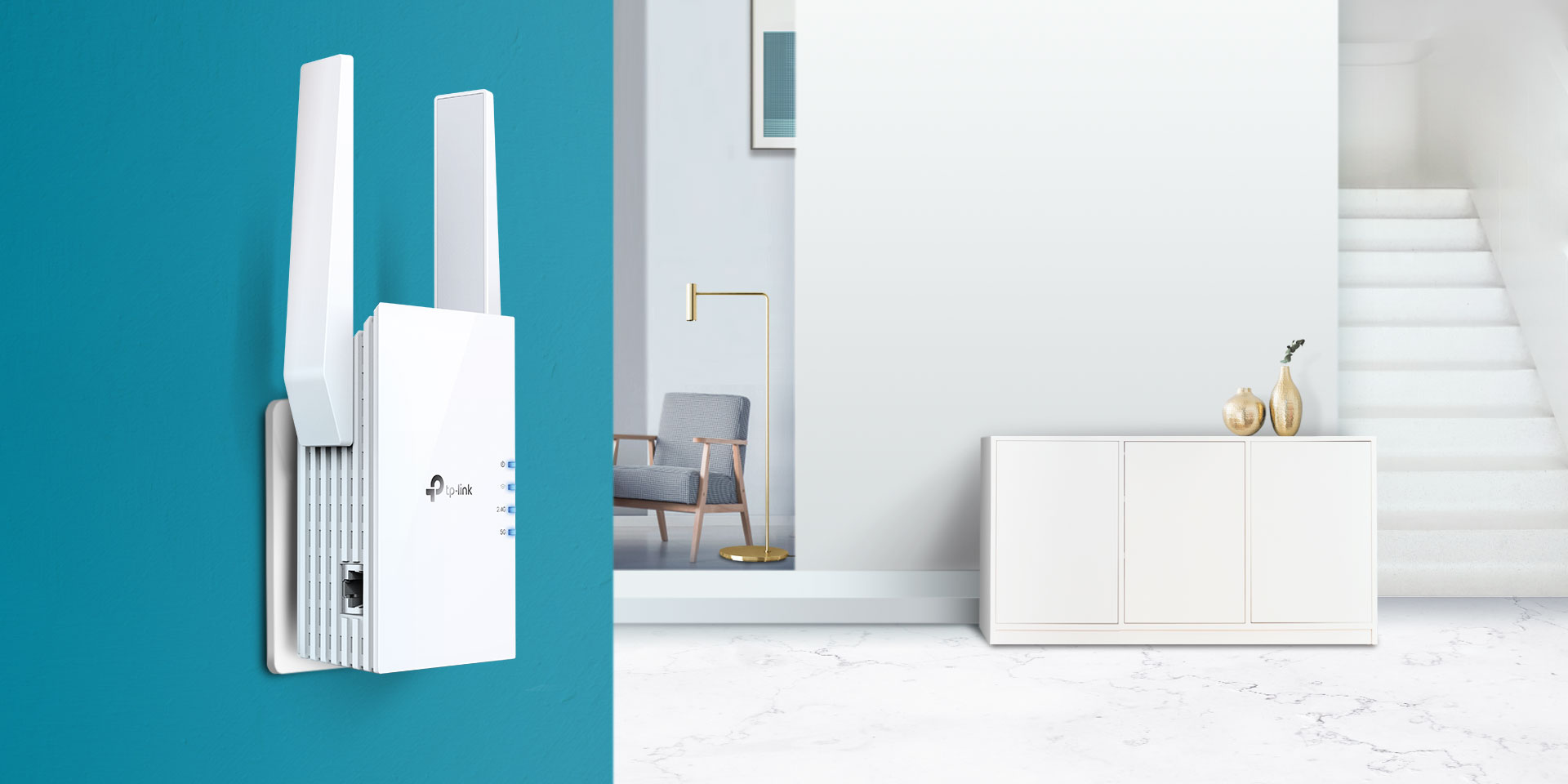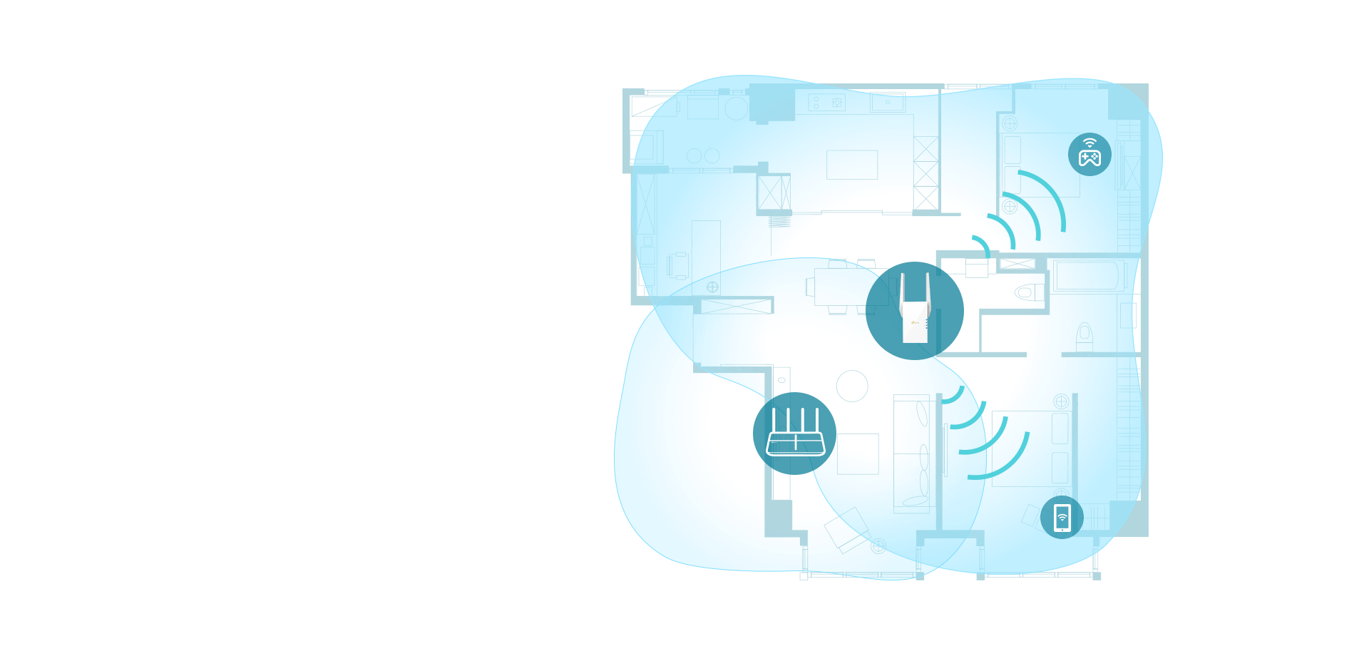 Le fonctionnement en double bande 2.4GHz et 5GHz permet une meilleure répartition du trafic et une couverture plus homogène dans les maisons et bureaux de taille moyenne à grande.